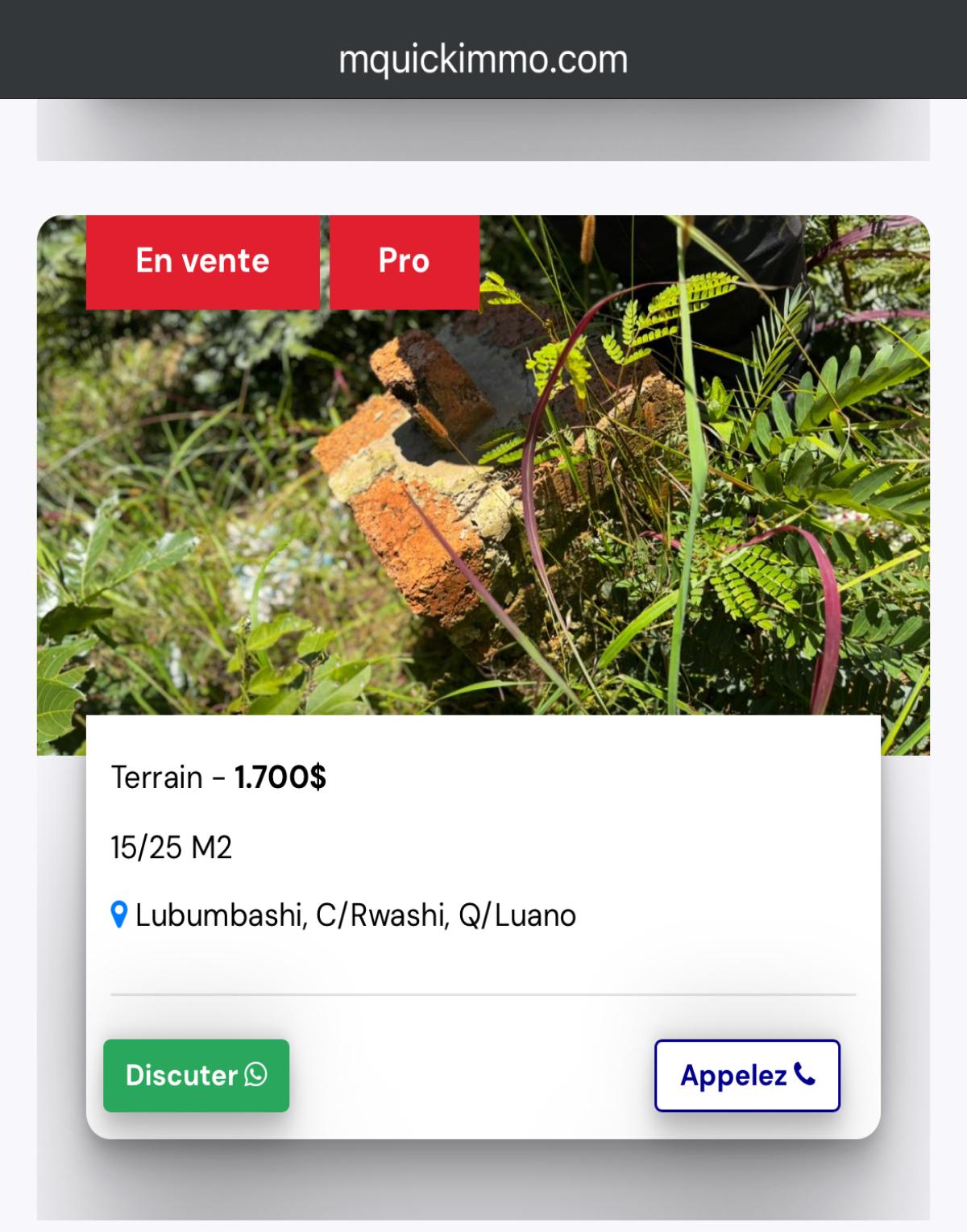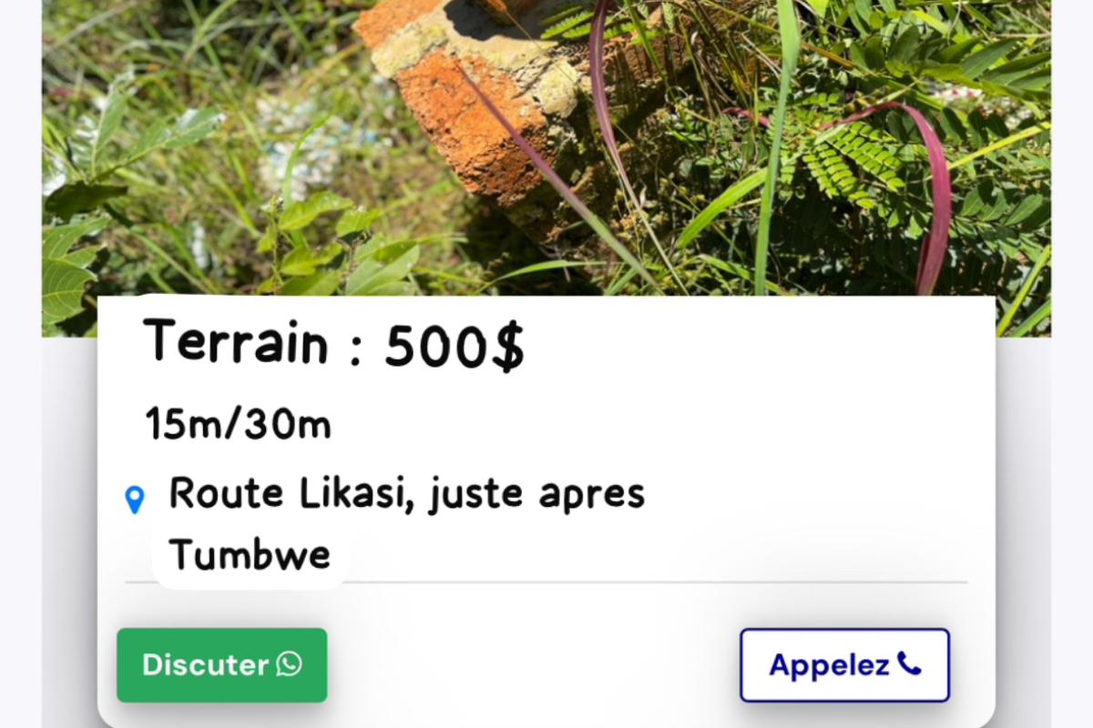 Profitez d’une opportunité unique avec des parcelles idéalement situées après Tumbwe, accessibles et prêtes à accueillir vos projets. Avec des prix dès 500$, payable en plusieurs mois, et bornage inclus, cette offre allie accessibilité et sécurité. Organisez votre descente et faites le choix d’un investissement intelligent